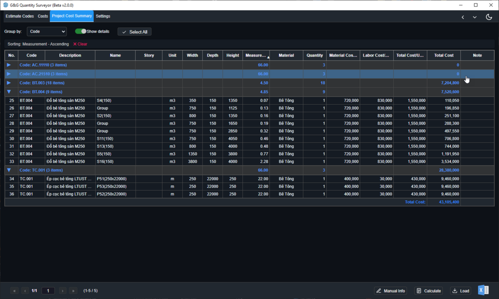 🔹 Thống kê cốt thép: Xuất danh sách cốt thép chính xác, hỗ trợ triển khai bản vẽ chi tiết.