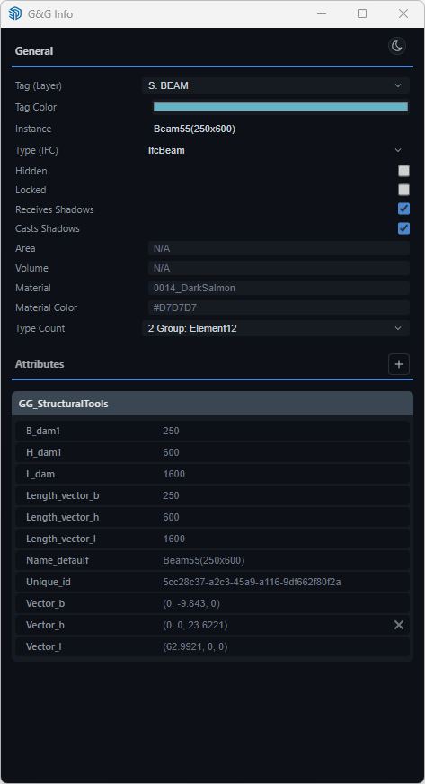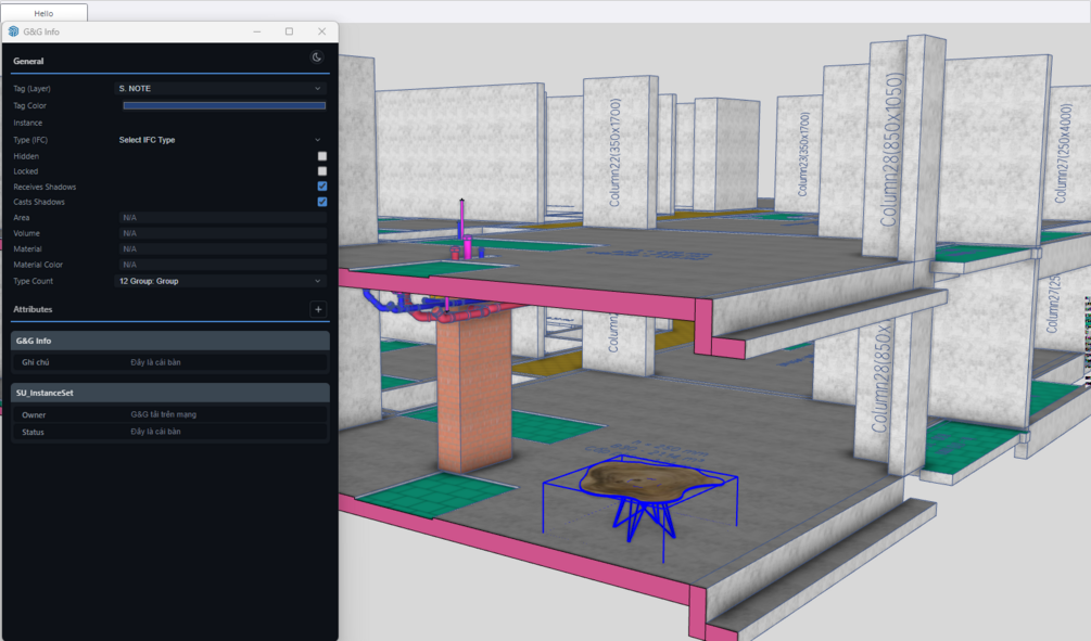 G&G Info là plugin hỗ trợ xem và quản lý thông tin của các đối tượng trong SketchUp. Plugin cung cấp giao diện trực quan để xem, chỉnh sửa các thuộc tính và thông tin IFC của các component, group và các đối tượng khác trong mô hình.