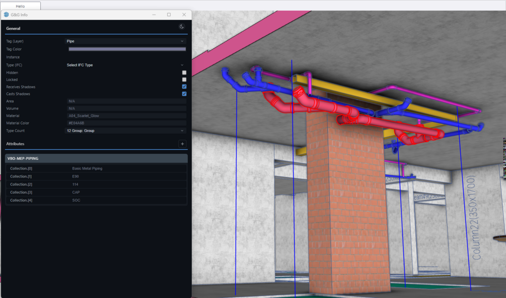 G&G Info is a plugin that helps view and manage information of objects in SketchUp. The plugin provides an intuitive interface to view and edit properties and IFC information of components, groups, and other objects in the model.